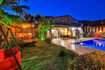 Balayı çiftleri tarafından da sıkça tercih edilen villanın yüzme havuzu hiçbir şekilde dışarıdan görünmüyor. İstenmeyen bakışlardan uzak kalacak şekilde tasarlanan havuz bölümünde, muhafazakar ve gizlilik konusunda özel ihtiyaçları olan tatilcilerin gönül rahatlığıyla tatil yapabilme imkanı mevcut. Yine aynı şekilde, havuz çevresinde yer alan güneşlenme terası da korunaklı olarak inşa edilmiş.