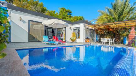 Kalkan’ın doğa harikası Akbel bölgesinde yer alan Villa Alkinoos, huzurlu bir tatil arayanlar için özenle tasarlanmış, her şeyin düşünüldüğü konforlu bir tatil villası. Geniş aileler ve arkadaş grupları için uygun bir seçenek olan villa, ferah iç tasarımı ve keyifli bahçe alanıyla eğlenceli bir tatile imkan tanıyor.