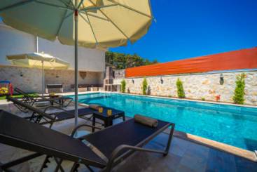 Pek çok lüks detaya ve eşsiz bir konuma sahip olan bu villada iki ayrı havuz bulunuyor. Isıtmalı havuz sayesinde dört mevsim Kalkan’ın tadını çıkarabileceğiniz villada, muhafazakar misafirler de tatilleri boyunca rahat vakit geçirebiliyor. Villada aynı zamanda çok hoş bir manzara da sizi bekliyor.