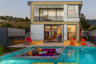Modern mimarisi ve ferah iç tasarımıyla öne çıkan Villa Eleni, açık plan tasarımlı, kullanışlı mutfağı ve konforlu salonuyla tatiliniz boyunca size ev rahatlığı sunuyor. İç mekanlarda tercih edilen canlı ve keyifli renkler villaya sıcak bir hava katarken, ana yatak odasında yer alan jakuzi de tatilinize dinlendirici bir dokunuş katıyor. Her iki yatak odasından da doğrudan havuz terasına çıkış imkanıyla günün her saatinde havuz keyfi fırsatı tanıyan Villa Eleni, unutulmaz bir yaz tatili için doğru tercih.