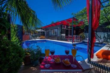 Villada muhteşem bir manzarayı seyrederek tadını çıkarabileceğiniz özel bir yüzme havuzu mevcut. Tatilinizi tam anlamıyla size özel kılan havuz, muhafazakar misafirleri de memnun edecek şekilde korunaklı bir tasarıma sahip. Dışarıdan görünmeyen bu bölüm, günün her saatinde kullanımınız için açık.