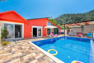 Villada yer alan yüzme havuzu korunaklı tasarımı ile muhafazakar misafirler için uygun yapıda. Dışarıdan görünmeyen havuz bölümü sayesinde, istenmeyen bakışlar konusunda endişe etmeden keyifli bir tatil geçirebilirsiniz.