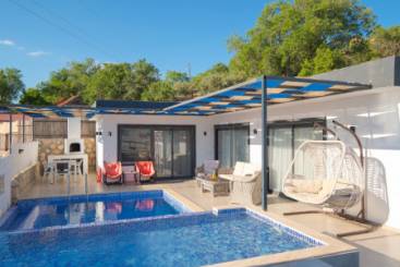 Taş mimari ile inşa edilen villada havuz bölümü tamamen korunaklı tasarıma sahip. Dışarıdan görünmemesi sayesinde, muhafazakar tatilciler de huzurlu vakit geçirebiliyor. Kelimenin tam anlamıyla size özel bir balayı sunan bu villada her gün ayrıcalıklarla dolu olacak.