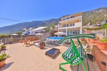 Deniz manzarasıyla büyüleyici bir atmosfer sunan villa, çocuklu aileler için çocuk parkına da sahip. Keyifli bir havuz bölümü bulunan villada, her an mavi ve yeşilin tadını çıkararak tatil yapabilmek mümkün.