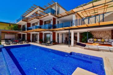 6 yatak odası ve 12 kişilik kapasitesi ile oldukça geniş bir villa olan Villa Kalya, misafirlerine ev rahatlığını sunmak adına gereken her şeye sahip. 6 banyosu bulunan villa, konforlu mobilyaları ve ferah tasarımı ile her misafirin rahat bir tatil geçireceğini garanti ediyor.