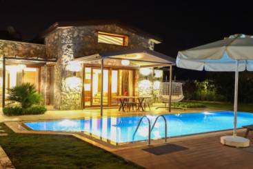 Taş mimarisi ve doğa içerisindeki konumu ile ilgi çeken Villa Leo-3’te muhteşem bir havuz alanı sizi bekliyor. Muhafazakar nitelikte inşa edilen havuz dışarıdan görünmüyor. Villada aynı zamanda jakuzili havuz da bulunuyor.