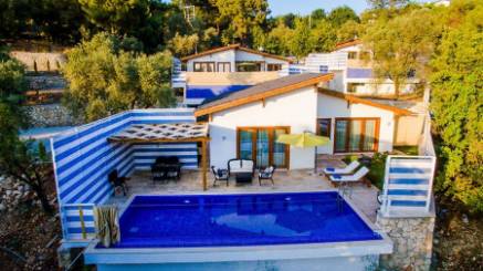 Güneşin keyfini doya doya çıkaracağınız Villa Lovely, korunaklı tasarıma sahip havuz alanı ile sevdiklerinizle istenmeyen bakışlardan uzak, özgür bir tatil deneyimi sunuyor. Balayı villası olarak da tercih edilen villa; panoramik deniz manzarası eşliğinde şezlonglarda güneşlenebileceğiniz, konforlu oturma alanında serinleyebileceğiniz, taş barbeküsü ve yemek masasıyla keyifli sofralara da imkan tanıyan, eğlenceli ve huzurlu anlarınıza eşlik edecek bir havuz terasına sahip.