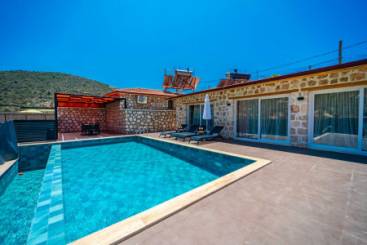 Evinizin konforunu ve bir villada olmanın lüksünü bir arada sunan bu villada muhteşem bir yüzme havuzu da sizi bekliyor. Dışarıdan görünmeyen havuz bölümü, istenmeyen bakışlardan uzakta bir tatil deneyimi yaşatıyor.