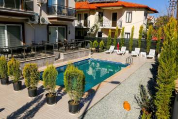 Geniş yüzme havuzuna sahip olan Villa Mariko’nun bu bölümünde güneşlenmek çok keyifli. Yemyeşil Dalyan atmosferinde, temiz havayı soluyarak tatil yapabileceğiniz villanızda, özel havuz günün her saatinde kullanımınıza açık. İster güne başlarken isterseniz geceleri havuz keyfi yapabilir, muhteşem villa tatilinin tadını çıkarabilirsiniz.