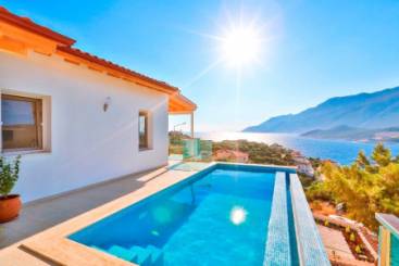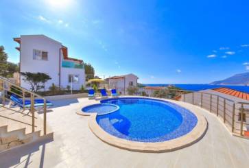 Deniz manzaralı kiralık villalar arasında öne çıkan Villa Mavi’de sizi büyüleyecek bir manzara ile karşılaşacaksınız. Yeşil ve mavinin bir arada görüleceği manzara, her güne keyifle ve mutlu başlamanızı sağlayacak. Villanın bu manzarasıyla ruhen de dinleneceğiniz bir tatil sizi bekliyor.