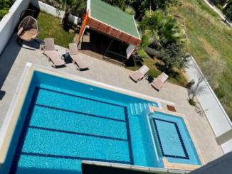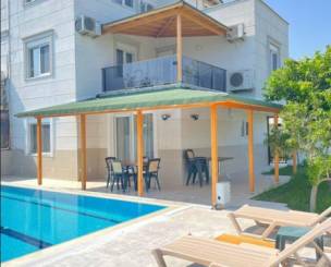 Yeşil bir arka ve ön bahçe alanı, bahçe alanında kurulu bir mangal düzeneği ayrıca giriş katında bulunan mutfağın hem havuz kısmına hem de arka bahçe kısmına açılan kapısı sayesinde ister yeşil arka bahçe alanında ister havuz kenarında bulunan geniş gölgelik alanında yer alan 6 kişilik masa ve sandalye kısmında kahvaltı, öğle ya da akşam öğünleri için kullanılabilir alanlar bulunmaktadır. Yine havuz etrafında geniş güneşlenme alanı ve wc/duş misafirlerimize sunulmuş ekstra bir konfordur.