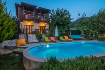 Doğa manzarası ile özellikle güneş batarken eşsiz kareler sunan villada, korunaklı ve dışarıdan görünmeyen bir yüzme havuzu mevcut. İstenmeyen bakışlardan uzakta tatil imkanı veren bu villada, muhafazakar misafirler tarafından da sıkça tercih ediliyor.