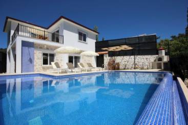 Kalkan'ın İslamlar bölgesinde konumlanan Villa Pera, deniz ve doğa manzarasının muhteşem uyumunu yaşayabileceğiniz, özenle tasarlanmış bir villa deneyimi sunuyor. İki yatak odası ve iki banyosuyla dört kişilik konaklama kapasitesi sunan villa, hem çiftler hem de küçük aileler için ideal bir seçenek.