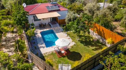 Bahçe bölümü oldukça keyifli olan villada, havuz terası ve yüzme havuzu korunaklı tasarıma sahip. Dışarıdan görünmeyen bu bölüm, misafirlerin gizlilik içinde yüzüp güneşlenmesine olanak veriyor.