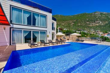 Villanızdan denize gitmek için yalnızca 2 kilometre yol kat etmeniz yeterli olacak. Tatiliniz boyunca istediğiniz her an Kalkan Halk Plajı’na yüzmeye, su sporları ile eğlenceli vakit geçirmeye gidebilirsiniz. Tüm bunlara ek olarak, 1 kilometrelik bir yol kat ederek Kalkan kent merkezine gitmeniz de mümkün.