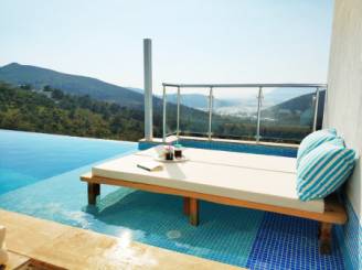 Lüks detaylarla donatılan bu muhteşem villada, havuz başında akşam sohbetleri fazlasıyla keyifli. Özellikle gün batımında ortaya çıkan kareler villayı çok daha keyifli kılıyor.
