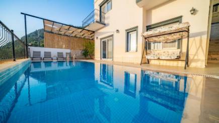 Mavinin her tonuna şahit olacağınız muhteşem deniz ve doğa manzarasına sahip olan bu özel villada günbatımları unutulmaz kareler ortaya çıkarıyor. Korunaklı, dışarıdan görünmeyen yüzme havuzunuzda yüzerken Akdeniz’in maviliğine şahit olmak çok özel bir deneyim.